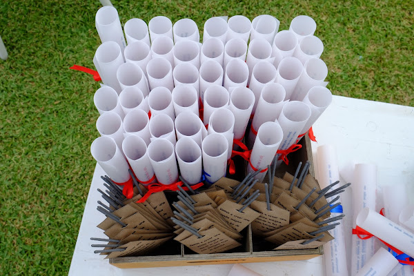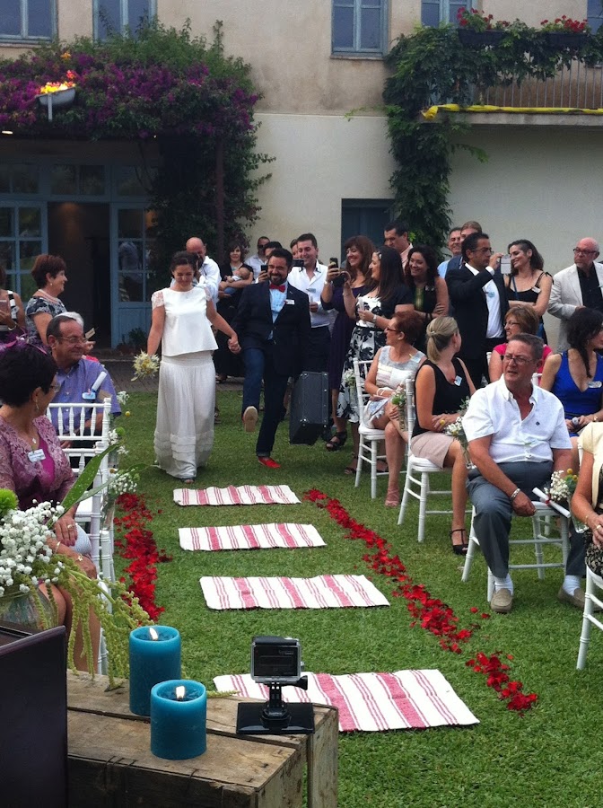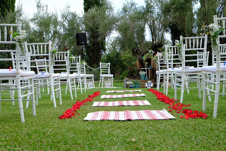 El día de su boda amaneció lloviendo y en lugar de ser yo la que mantuvo la calma, fueron Celia y Vicenç quien me enviaron de buena mañana un mensajito diciéndome que no me preocupara que habían mandado hacer llover para que el césped estuviera bien fresquito para la tarde; así que se puede esperar de una boda? Pues que todo sean risas y calma, ambos se vistieron juntos, Celia iba espectacular con un dos piezas de Laure de Sagazan y Vicenç como buen mallorquín con unas espardenyes en rojo a juego con la pajarita.
