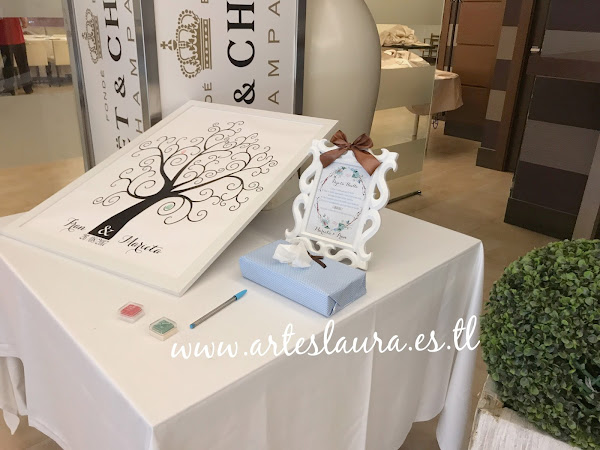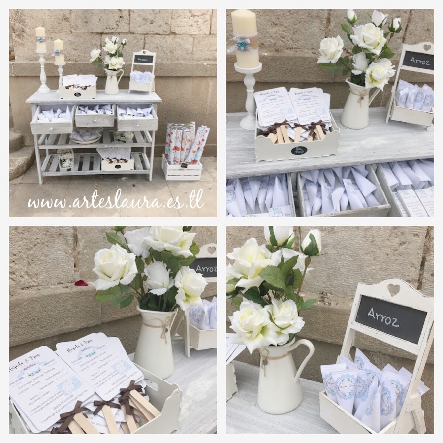 Gracias por confiar uno de los días mas importantes de vuestras vidas en Artes Laura, la verdad fue muy divertido, porque a pesar del "picatoste" que llevaba la novia en la cabeza se dejo asesorar en todo momento, fue fácil elegir un diseño acorde a los gustos y tonalidades, ajustarnos al presupuesto en fin...