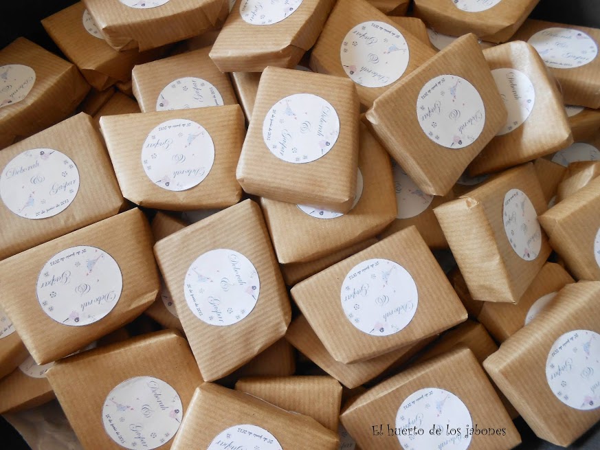 Deborah eligió para envolver los jabones un papel tipo craft en tonos marrones, un papel sencillo que una bonita etiqueta no necesita mucho más.