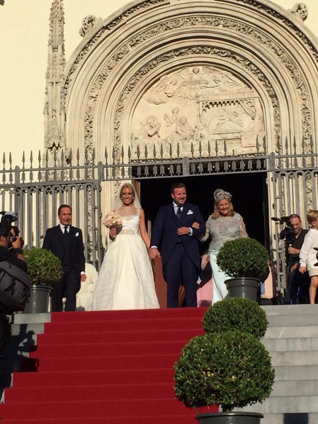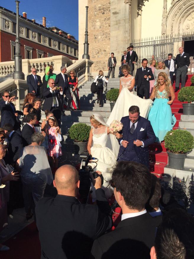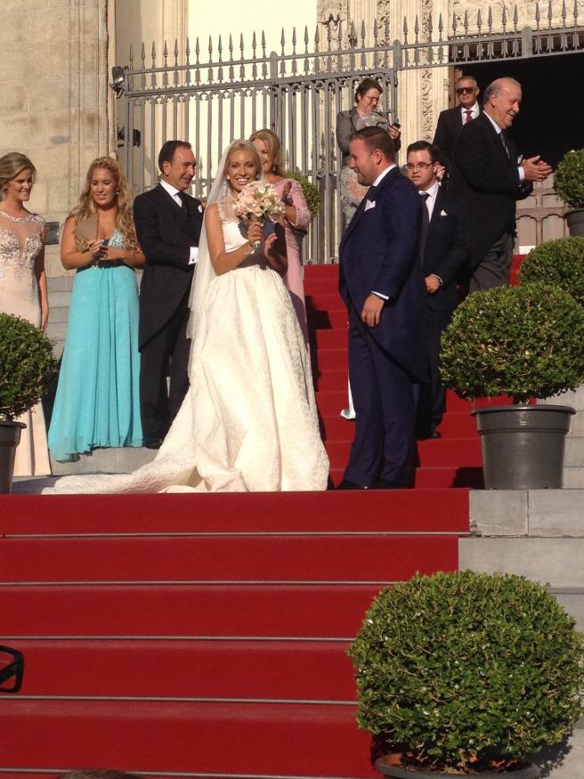 Recuerdo llegar a la iglesia con tan imponentes escaleras, alfombra roja y pequeños arbustos con forma redonda y quedar estupefacta al presenciar por primera vez, a tantas cámaras de televisión y fotógrafos que no perdían detalle de cada invitado que íbamos subiendo por la alfombra roja. La calle estaba llena de curiosas miradas y autobuses que después nos llevarían a la famosa finca In Zalacain situada en la exclusiva urbanización La finca.