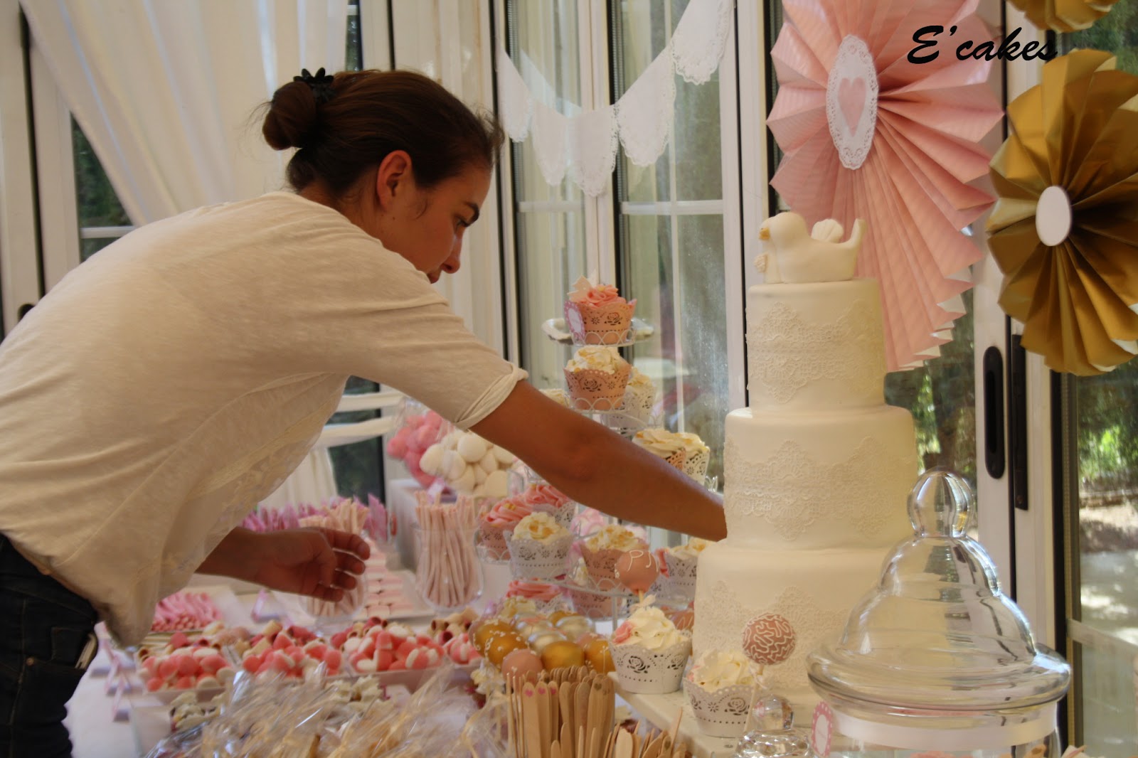Como aquel día hacia tanto calor y las mesa iba en una carpa Sara me llamó para decirme que mejor montaramos unos minutos antes y menos mal porque cuando llegué hacia un calor de muerte. Úrsula y Sara se salieron de la comida y nos pusimos manos a la obra, ellas a rellenar botes de chuches, yo a colocar dulces.
