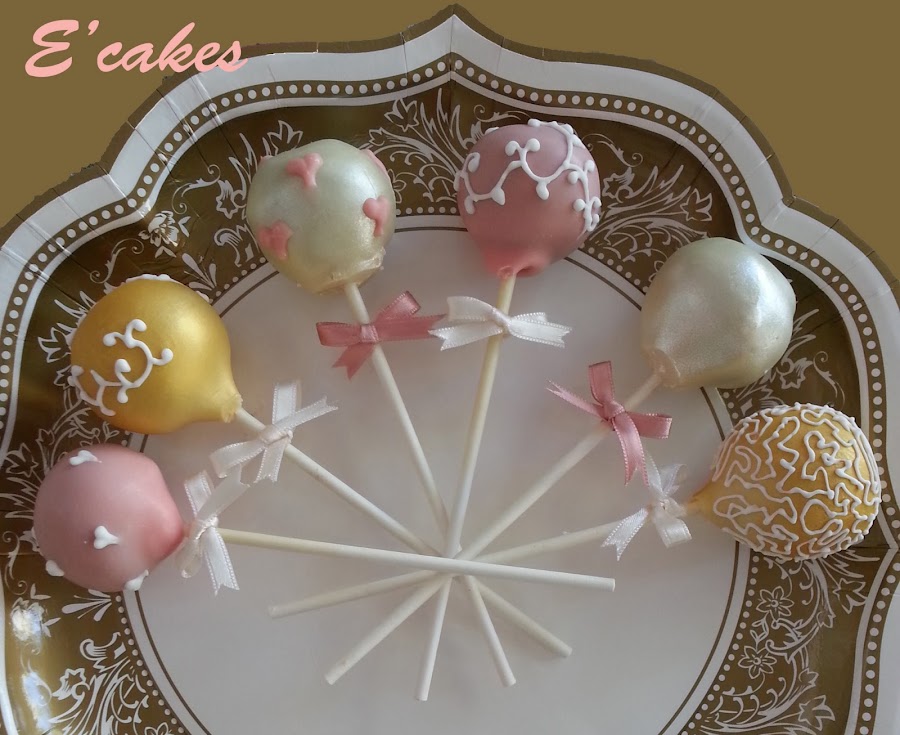 Lo siguiente cakepops, eso fue fácil de diseñar, cakepops sencillos en los colores de la mesa. Me gustan mucho los cakepops sencillos para las bodas, los veo muy elegantes. Después de bañarlos con los colores de la mesa, cogí la manga, me encanta la manga jeje, y les hice detalles en conjunto con las galletas.