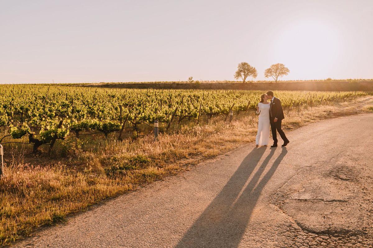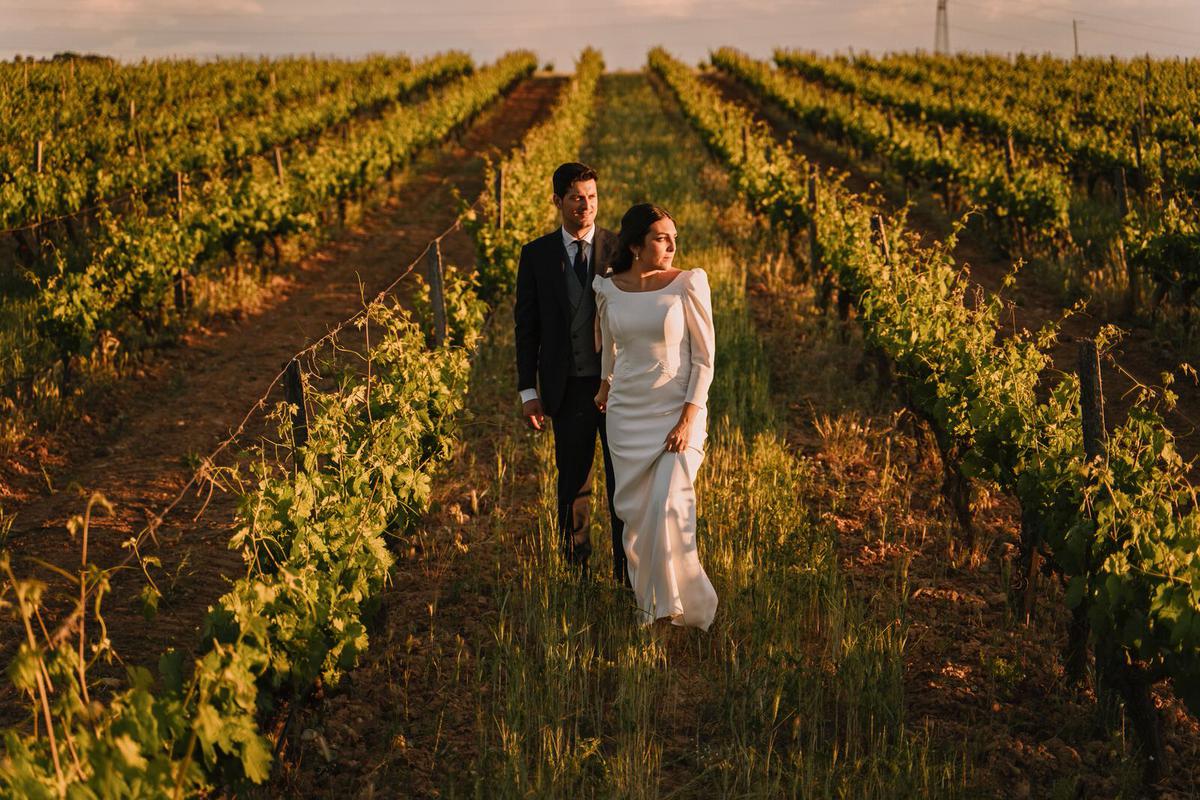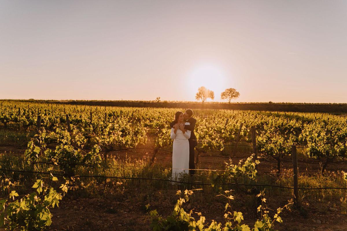 Estaban decididos a casarse en Aranda del Duero, y tener un recuerdo único de una manera natural, sin tener que estar mucho tiempo en el reportaje de fotos para poder disfrutar de su fiesta. Durante la celebración nos escapamos para hacer el reportaje a la puesta de sol y quedarnos entre las viñas