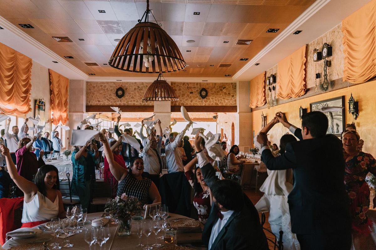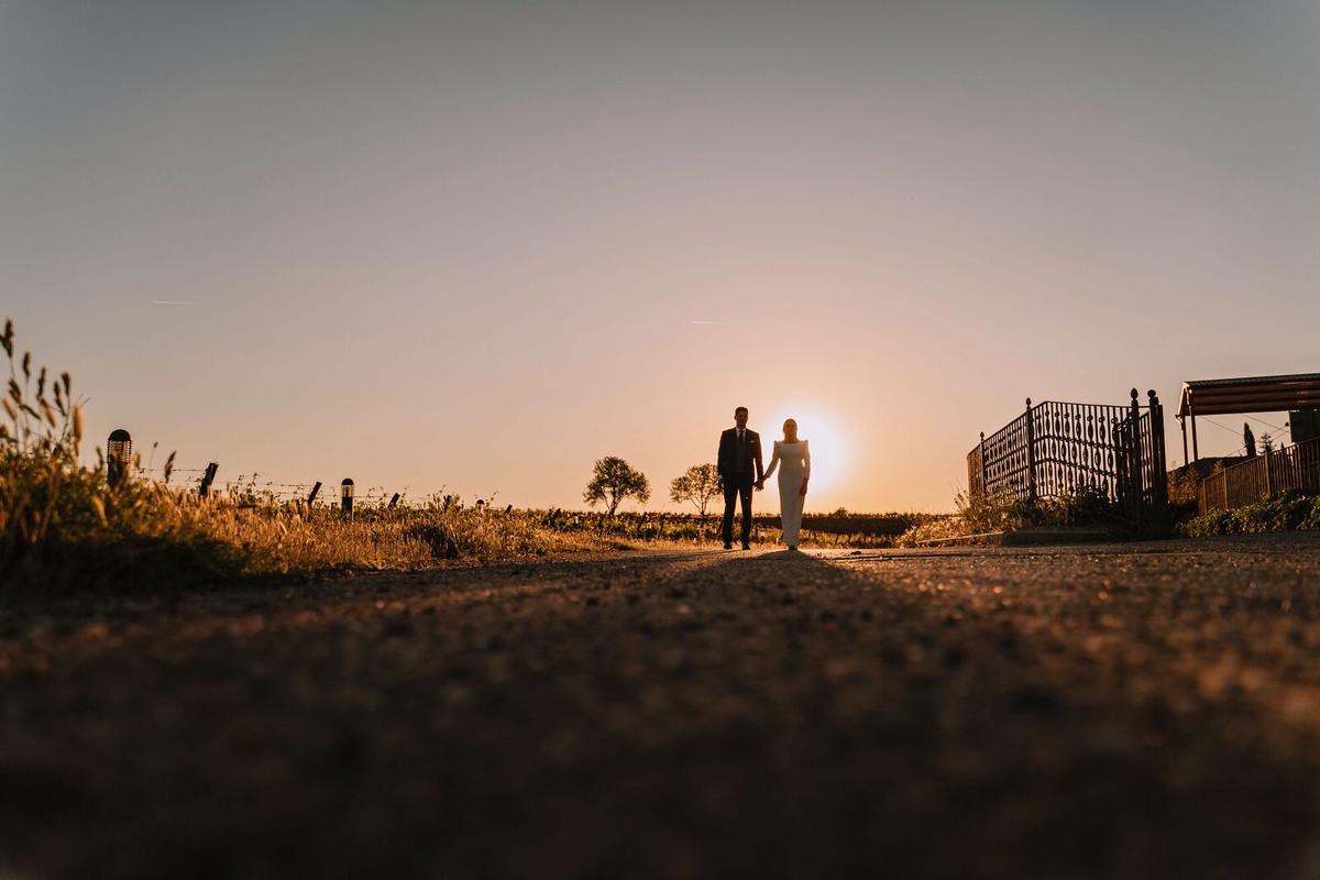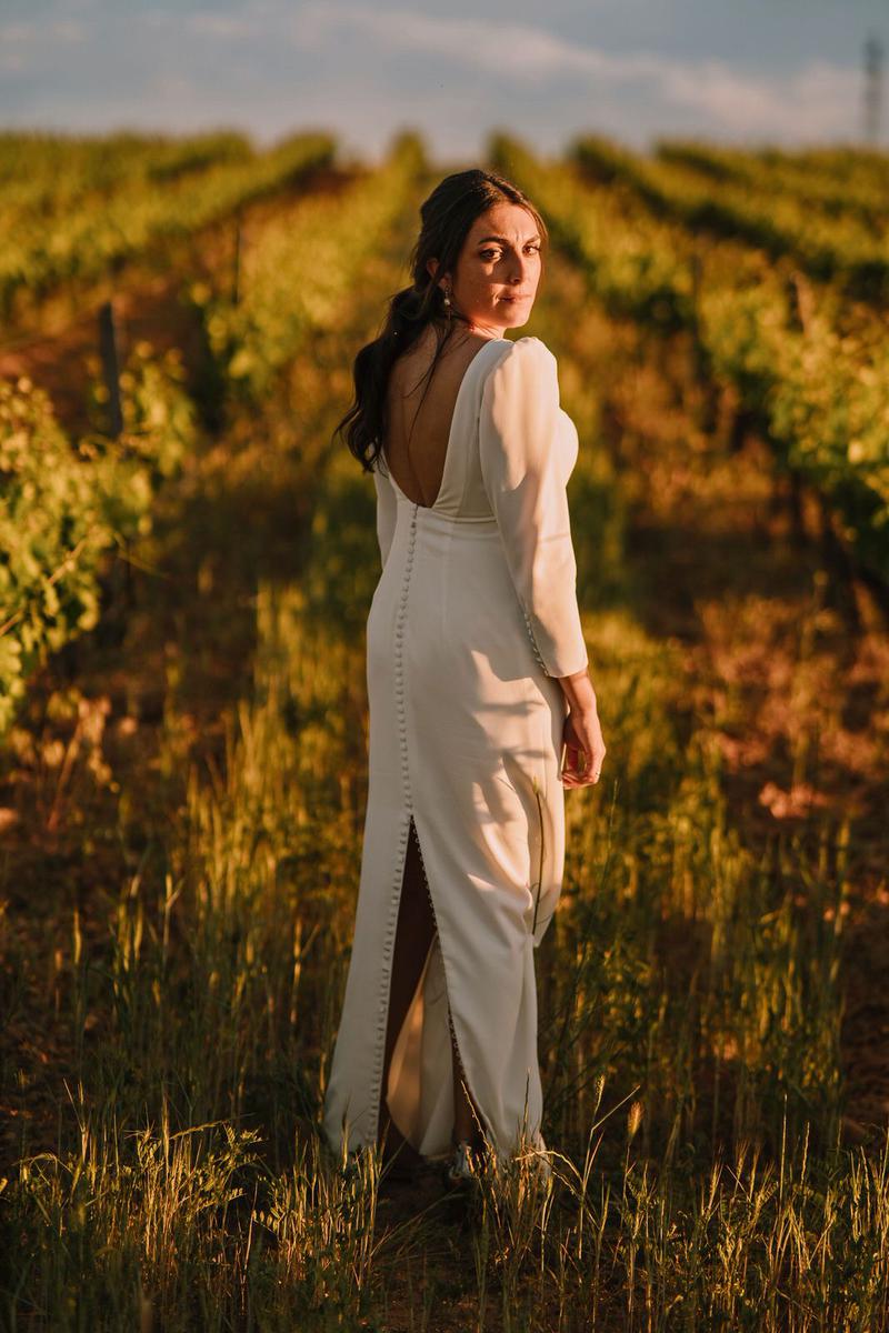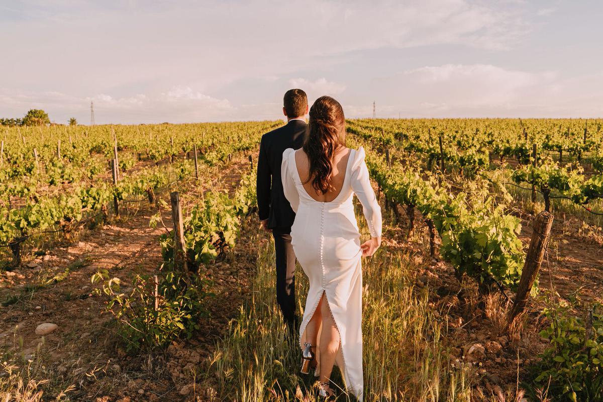 Estaban decididos a casarse en Aranda del Duero, y tener un recuerdo único de una manera natural, sin tener que estar mucho tiempo en el reportaje de fotos para poder disfrutar de su fiesta. Durante la celebración nos escapamos para hacer el reportaje a la puesta de sol y quedarnos entre las viñas