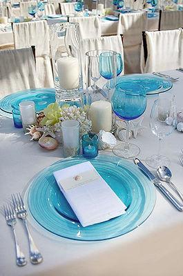 La decoración puede ser infinita, tanto con colores azules como el agua del mar o pequeños detalles como caracolas o estrellas en los centros de mesas