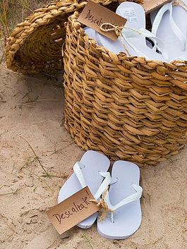 Todos sabemos que los tacones o zapatos de hombres no son muy compatibles con la arena de la playa, por eso podremos dar unas chanclas para que nuestros invitados puedan ir mas cómodos