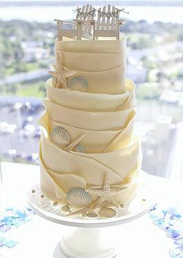 La tarta no podría ser menos, una tarta grande y de muchos pisos decorada con conchas caracolas estrellas de mar..para que nuestros invitados queden perplejos ante semejante maravilla