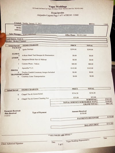 Para todos los que decidáis casaros en LAS VEGAS, tener cuidado con todo lo que os ofrezcan, mirar y remirar todo ya que todo siempre conlleva un plus y las propinas que no están incluidas pero que deben abonarse de igual manera.