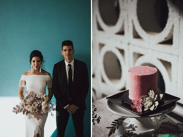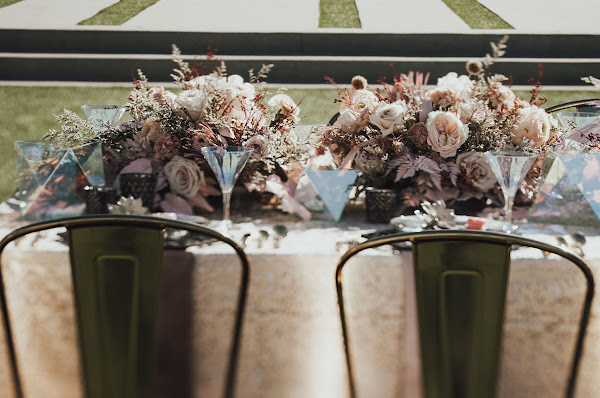 Fusionando una estética bohemia, con un estilo más rockero, la diseñadora Kate Mellow, de Bloom + Blueprint, creó una excelente inspiración para bodas estilo boho pero con un punto diferente.