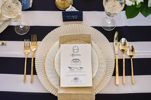Llegamos al viernes con una boda con toque marinero. La verdad es que no somos muy de azul marino, sin embargo, combinado con dorados y algún detalle de madera, nos parece que queda perfecto. Para bodas, comuniones (ideal ese toque navy en las invitaciones de los peques, que además se les puede dar un diseño más fresco), o cenas con los amigos. Las mesas de bodas siempre hay que tomarlas como una inspiración para luego adaptarlas a nuestras necesidades.