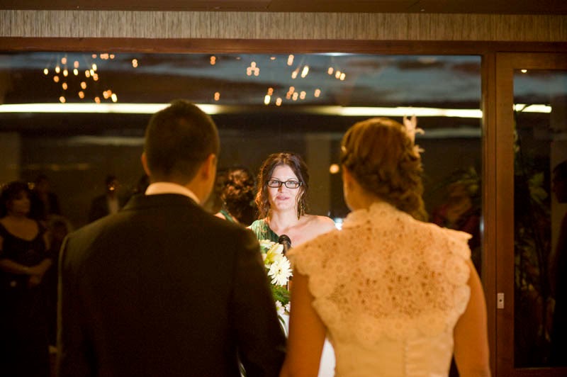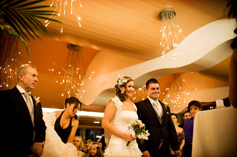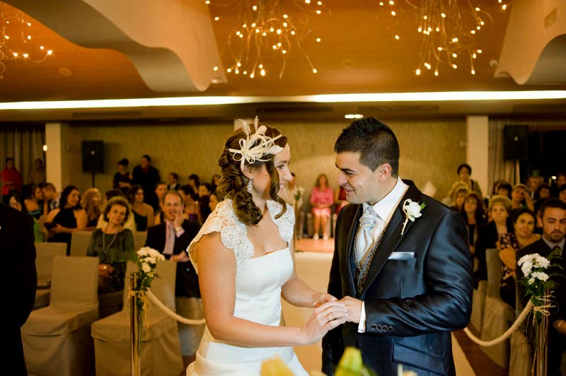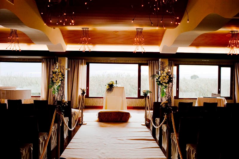De repente se abrió la puerta y la sensación de ver a toda tu gente es indescriptible! Solo necesitaba ver la cara de felicidad Miguel y a partir de ese momento volvió la calma y sosiego. La sala había quedado preciosa, nos habían preparado una sala con unos grandes ventanales con vistas a la Albufera, de este modo mientras se celebraba la ceremonia y como la lluvia nos había dado una tregua pudimos disfrutar de la puesta de sol.