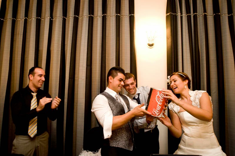 Para nuestra entrada, intentamos hacer un video tipo ?cine mudo?, donde contábamos nuestra historia y fuimos intercalando fotos de nuestra gente, nosotros desde fuera, esperando para entrar oíamos las carcajadas de nuestros invitados.
