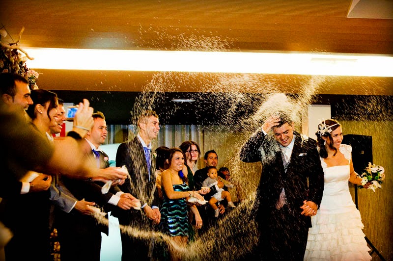 En cuanto a la decoración me colocaron todo lo preparado para la ceremonia exterior, incluso tres balas de paja que habíamos llevado nosotros que utilizamos para sentarnos. Al final de la sala nos colocaron dos cestas con saquitos de arroz de colores que también preparamos nosotros.