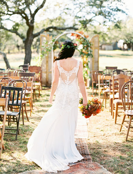 Hoy os muestro un popurrí de imágenes que van desde el altar en mitad del campo con la simpleza de la hierba seca, a las sillas de madera de diferentes estilos, y con unas hojas de ventanas que hacen tanto de altar como de final de pasillo. Los colores otñales se repiten año tras a año, y es que como ya sabéis, el naranja, rojo, marrón y dorados son la paleta estrella y que podéis usar a la hora de elegir vuestra decoración y ramo de novia.
