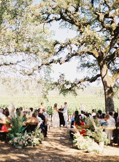 Para mostrarte esta boda vamos a trasladamos al otro lado del Atlántico,más concretamente al valle de Sonoma en el corazón de California donde se encuentra las bodegas de B R Cohn. Lugar donde se celebró esta boda de estilo rústico con un toque chic entre viñedos de Caberent Sauvignon y olivos.Bien podría ser una boda realizada en España donde no quedamos por sol y preciosas fincas.