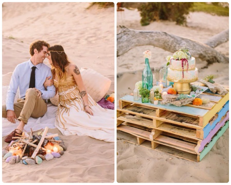 Las bodas boho, para los que no sepan lo que es, son bodas muy naturales, nada convencionales y muy desenfadadas. Son bodas bohemias en las que se fusiona un poco del estilo hippy, incluso un estilo rústico también. Lo bueno de las bodas boho es que permiten introducir matices de otros estilos siempre y cuando sean en la misma línea: naturalidad y sencillez. Como ya he dicho, al ser sencillas se suelen buscar sitios que encajen en este estilo, como una playa o un bosque, rodeados de naturaleza. Y como una imagen vale más que mil palabras, aquí tenéis unas imágenes para entender mejor este estilo.