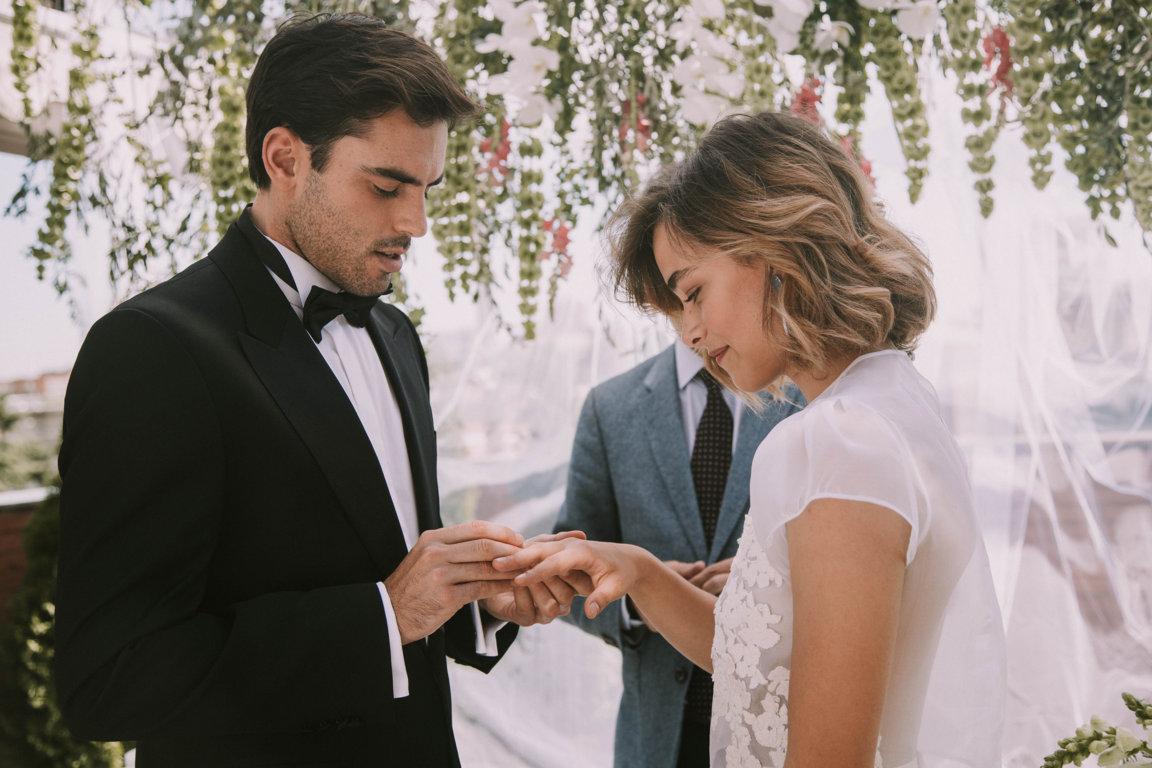 Entre el discurso personal del oficiante, este podrá leer los artículos del 66 al 68 del código civil para hacer referencia al matrimonio. En el momento del “Sí, quiero” sonará de nuevo vuestra canción mientras esa persona tan especial os pregunta si queréis contraer matrimonio, seguido del ¡Puedes besar a la novia!
