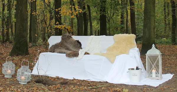Despues de un rico desayuno en la cama preparado por el, decidí hacerle una cita, claro como 10 años de casados no se cumplen todos los días queria algo especial, saque de una gran caja mi vestido de novia (el cual me a encojido una o dos tallas jajajaja) tomé un par de cosas y me fui al bosque, allí prepare un pequeño rinconcito con velas, farolas, y por su puesto que las fresas y la champange no podian faltar, hacia frio, pero gracias al creador no llovio y todo me salio bien, mientras preparaba todo, los caminantes curioseaban un poco, me preguntaban para que revista seria, jajaja, yo por supuesto les contaba el motivo de tan especial proyecto. hoy quiero compartir los detalles de mi inspirada y romantica cita!