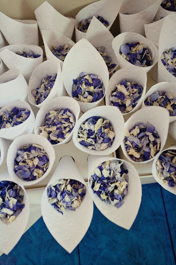 En las bolsitas ó cucuruchos del arroz también podéis incluir confetis en forma de corazón ó pequeñas florecillas o pétalos en color lavanda!