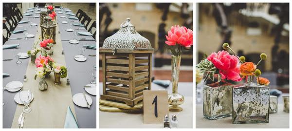 Y ahora, unos pequeños detalles a lo largo de la mesa, con pequeños ramos de flores o sueltas y ya lo tienes. Una boda muy estilosa por cuatro duros.