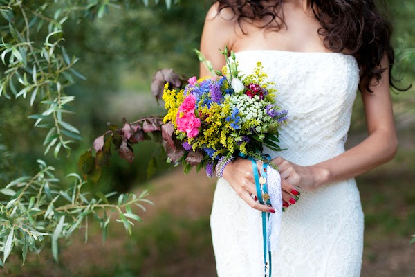 Con mucho color, usualmente de flores silvestres. Otra opción, menos usada, es llevar un ramo completo de margaritas.