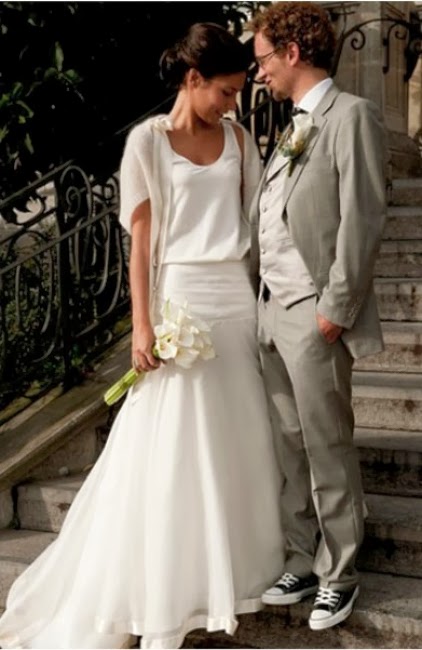 Él: Traje de telas no rígidas, en ocasiones rebeca en vez de chaqueta y pajarita en vez de corbata, aunque el uso de esta también puede ser opcional. El uso de prendidos suele ser muy usual, siendo estos de flores silvestres o margaritas grades.