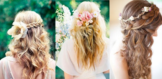 Trenzas, recogidos flojos y sencillos, pelo suelto, coronas de flores o encaje.