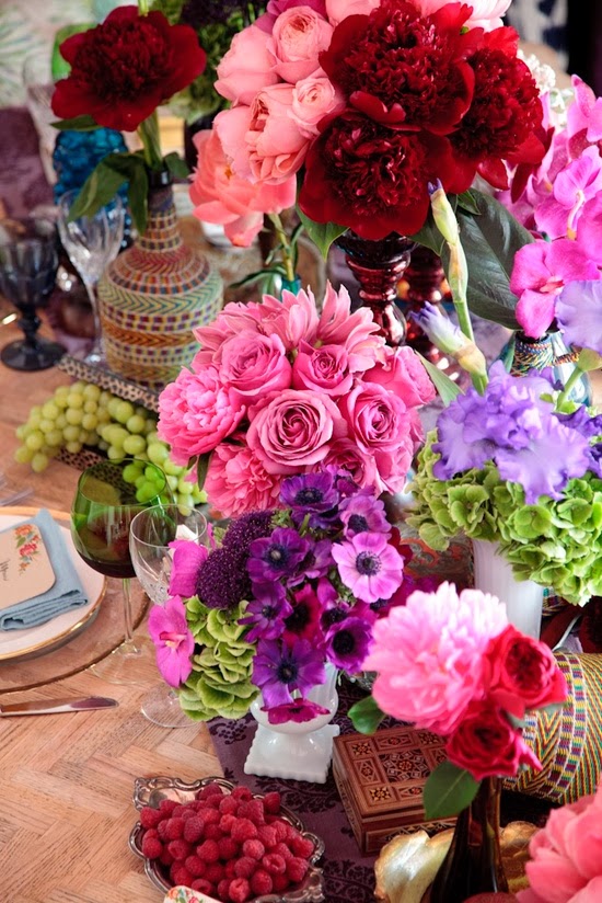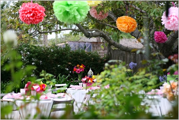 Naturaleza viva, estética romantica, manteles deflores distintos, sillas o hacientos distintos... Utiliza jaulas blancas, flores por todos los rincones y ponpones para dar color.
