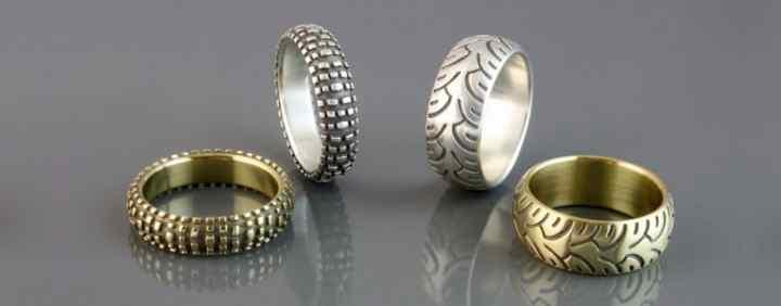 Una original idea es grabar las alianzas con las marcas de una rueda como te muestro en la siguiente imagen ¡Muy personal!