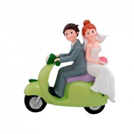 Y por último, unos novios en una moto forman la figura de la tarta.