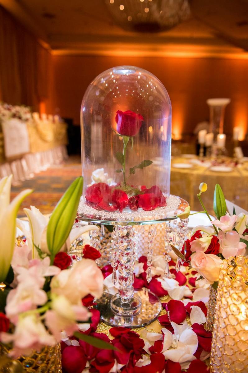 Si te encanta la Cenicienta puedes poner el carro de calabaza como centros de mesa o la rosa hechizada si prefieres a la Bella y la Bestia.