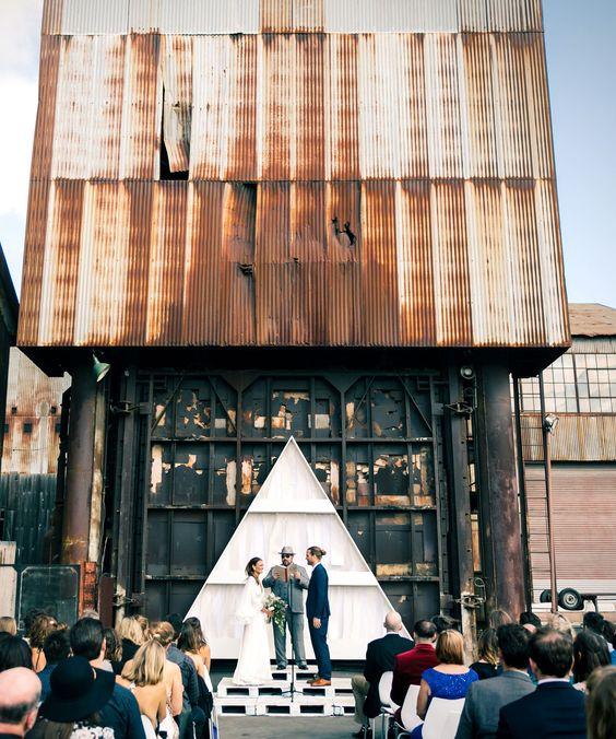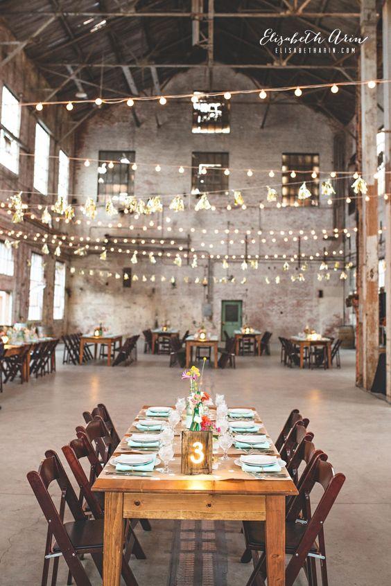 La ciudad ofrece muchas posibilidades. Un espacio industrial como una vieja fabrica o almacén, de aspecto frío pero con una decoración muy cálida y romántica, puede convertirse en un lugar mas que ideal! La iluminación es la clave para darle calidez al espacio, marcando las zonas mas importantes, como la zona de ceremonia (si se trata de una boda civil claro). Mesas largas repletas de vegetación aportarán un fantástico contraste, y el conjunto será un espacio acogedor y romántico.