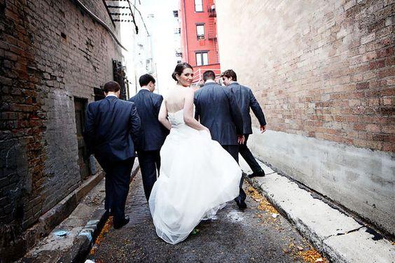 ¿Y que me dices de una sesión de fotos por tu ciudad? ¡Eso si que tiene que ser divertido! Vestida de novia, con tu marido de la mano, paseando por la avenida principal, cogiendo un taxi, el metro…. Buscad entre los dos lugares que signifiquen algo en vuestras vidas. Por ejemplo el instituto donde os conocisteis, la cafetería donde compartisteis el primer café… También podéis contar con vuestros amigos para la sesión de fotografías. Os aseguro que resultara algo muy diferente para todos!