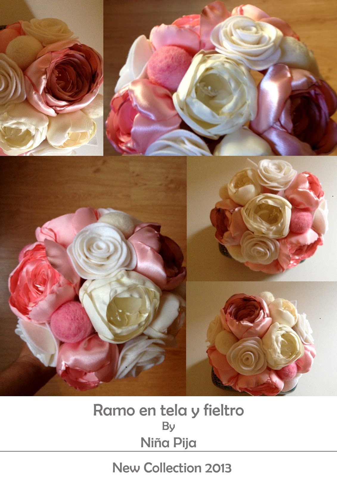 No hace mucho que hemos comenzado a combinar fieltro y tela en nuestros RAMOS de NOVIA.Al comenzar a hacerlo nos hemos dado cuenta de lo bien que queda esta combinación. Aquí está el resultado de la combinación de los dos materiales, Un precioso BOUQUET, de estilo romántico para una NOVIA especial. Con tallos vistos y remate de PUNTILLA, para darle un aire VINTAGE. Y para rematar unas hojas teñ ...