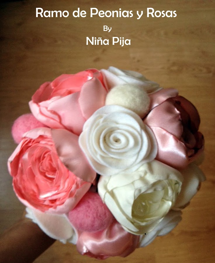 Para muestra un "RAMO" de peonias en tela con rosas de fieltro.