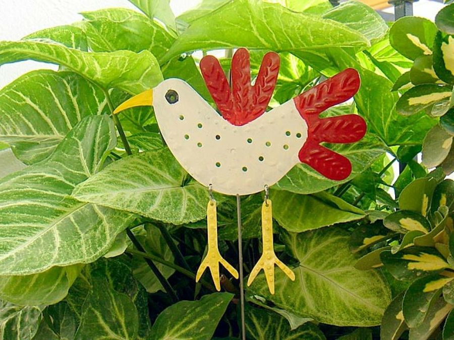 Un jardín ofrece numerosas posibilidades para colocar esos pequeños detalles que complacen a las novias. Podemos, por ejemplo, poner en las plantas siluetas de animales hechas de hojalata, que ganan considerable atractivo si las pintamos en varios colores.