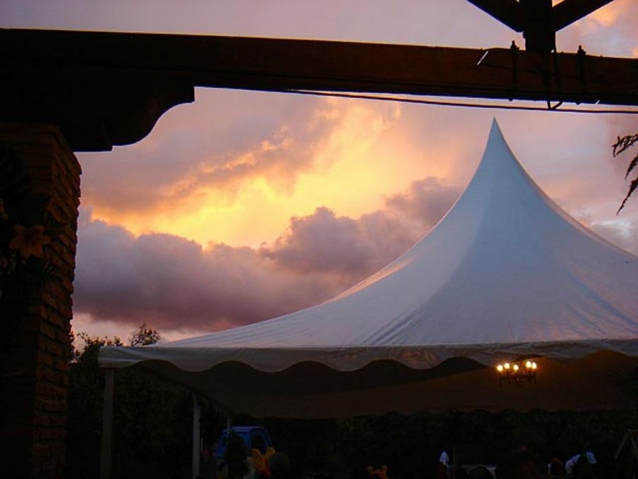 Las carpas que cubren las mesas son muy necesarias tanto en tiempo lluvioso como cálido. Si sólo las alquilamos y las montamos por nuestra cuenta, ahorraremos una partida a la organización.