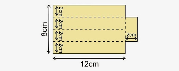 Luego de la cartulina de color crema, recortamos otros 2 rectángulos de 8cm x 14cm. y en cada uno de ellos hacemos los siguientes dobleces y recortes, en las medidas que he marcado: