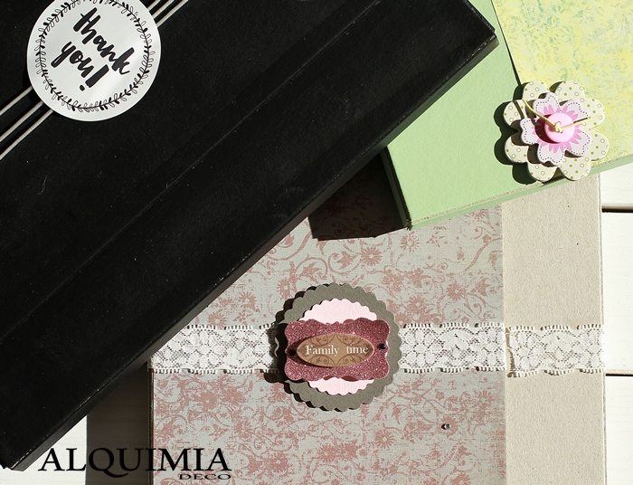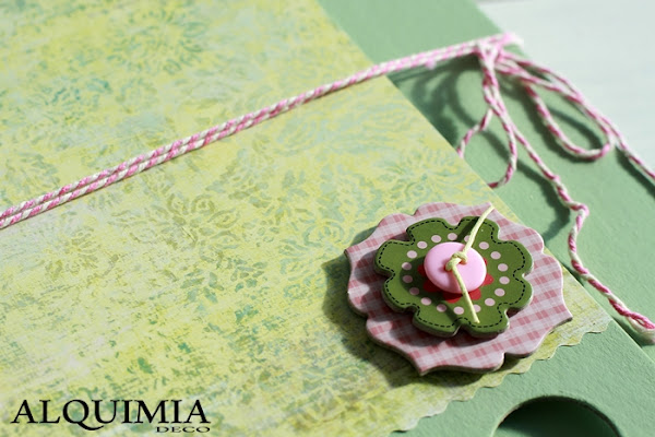 Después de pasarme casi todo un día entero mirando la página de Selfpackaging y buscando con que quedarme como una loca, decidí coger unas carpetas de cartón, unos medallones de cartón gris y rosa, y unas estrellitas verdes que al final no he podido colocar, ah!, y un fantástico hilo rosa y blanco... me ha encantado!.