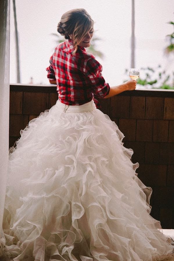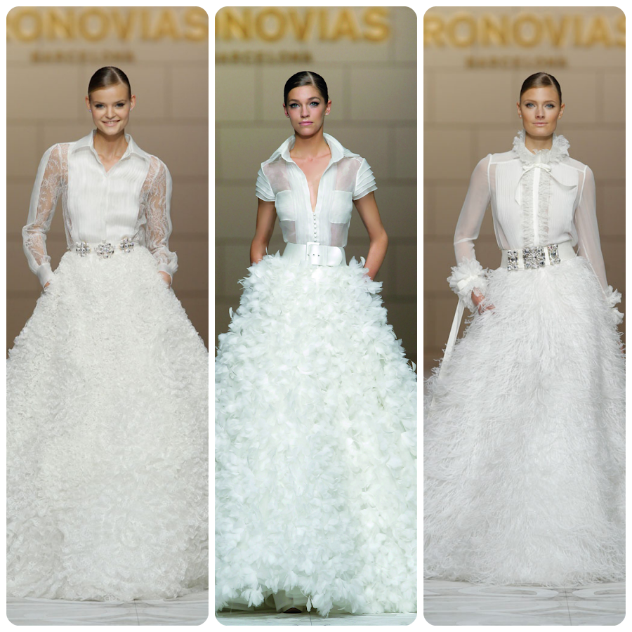 Y ultimamente un estilo que estoy viendo mucho en vestidos de novia es el llevar una camisa, ya sea por encima del vestido o integrada en el.