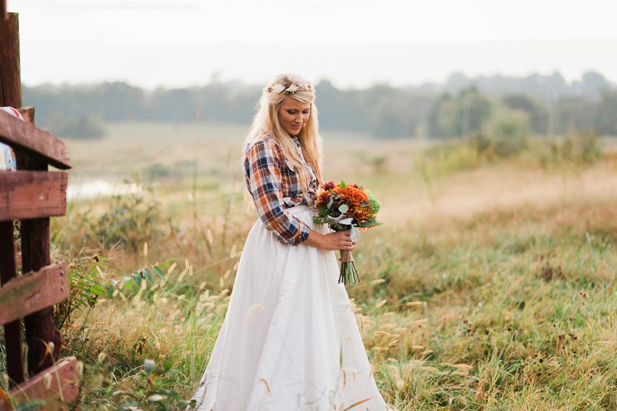 Y no...no por el precioso ramo de colores cálidos que aparece en la foto, si no por el estilismo de la novia.