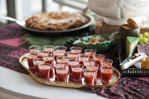 Si vas a colocar otra mesa con aperitivos, recena etc.. elige bandejas de diferentes formas y texturas, por ejemplo cristal, dorada, de pizarra o madera y coloca en diferentes alturas.