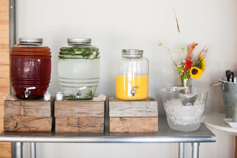 Para la bebida.. preséntala en bonitos contenedores de vidrio sobre cajas de madera, y que no se te olvide la cubitera con mucho hielo.