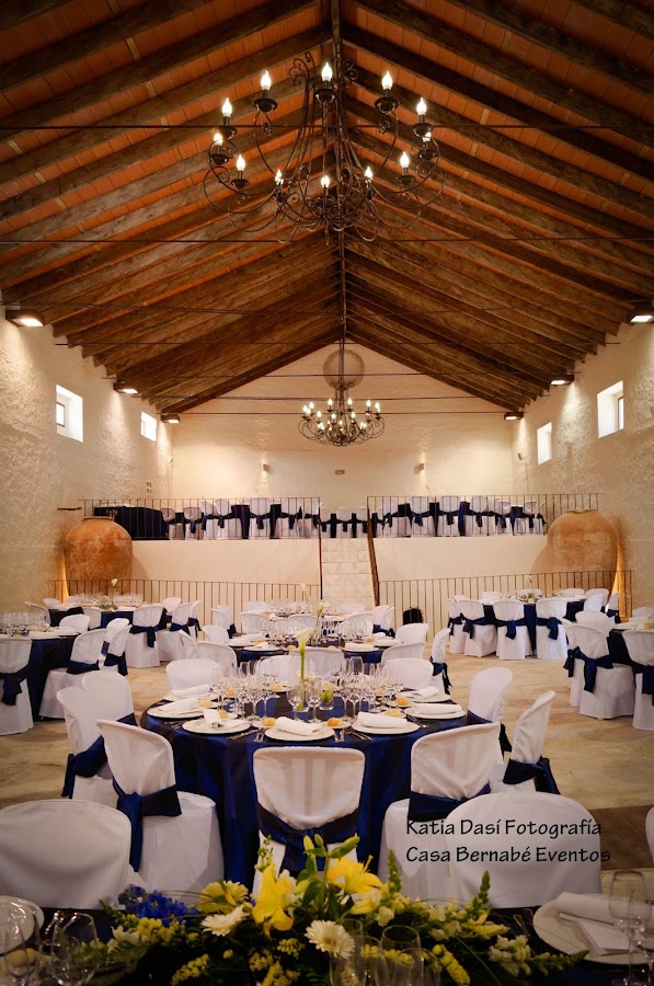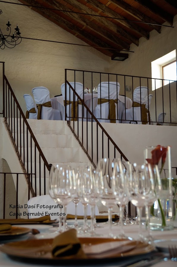 Para celebrar el banquete de boda Casa Bernabé cuenta con un espacio único para ello. Tiene una capacidad para 240 comensales. Es muy especial, ya que es un antiguo molino restaurado en el que se mezcla la modernidad de lo restarado con lo antiguo conservado. A mi me enamoró! Se divide en dos espacios, una parte en altura, donde pueden poner mesas para comensales o puede servir para colocar la discomovil y celebrar la fiesta posterior al banquete.