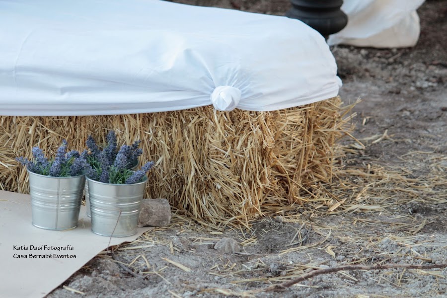 Si tu estilo es más rural Casa Bernabé puede crear para ti un espacio rústico con balas de paja, paniculata, velas... Todo estaba precioso! Yo no sabría cual escoger de los dos, si el espacio rústico o el más clásico.