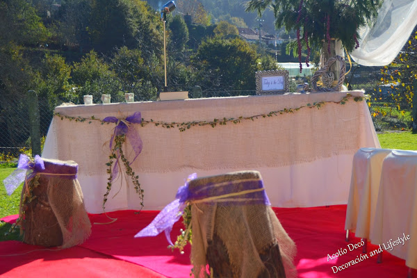 El lugar un paraje espectacular, rodeado de naturaleza con un encanto especial. Mi amiga @MaikaGarabán (weddingcrafter) fue la encargada de decorar parte del evento; y allí me fui yo a echarle una mano y a disfrutar como una enana de todo el fin de semana.
