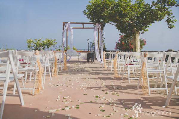 El poder ver plenamente el horizonte azul y la plenitud del mar desde un enclave totalmente precioso mientras os casáis, no tiene precio.