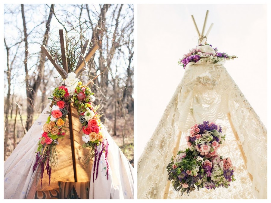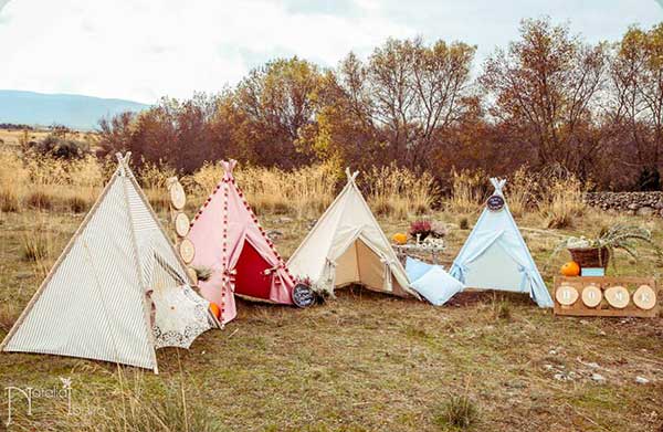 El estilo boho chic ha llegado para quedarse. Los Tipis o tiendas indias, están cada vez, más de moda en el mundo de las bodas como alternativa a las tradicionales carpas. Si te gusta esta idea pero quieres darle un toque diferente ¡pon un tipi en tu boda!