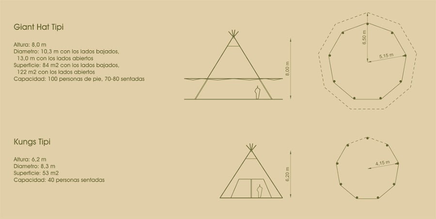El tipi es un término procedente del sioux que significa para vivir además de la vivienda nómada original de las tribus de Norte América. Aunque originalmente eran construidas con madera de pino y cubiertas con pieles de animales, hoy en día, podemos encontrarlas hechas con lona o tela.
