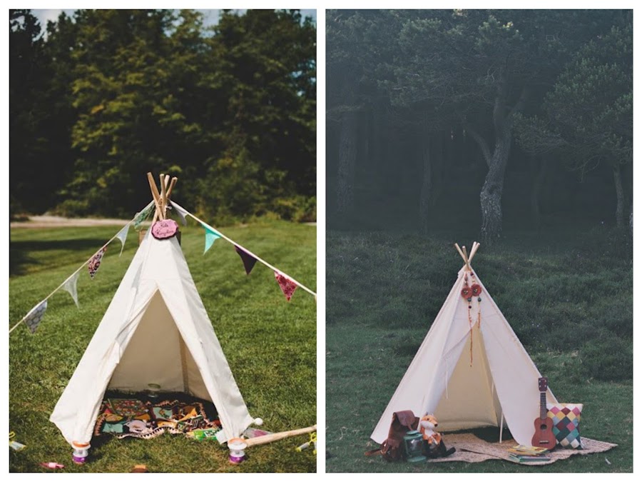 Cuando hay niños en una boda, es importante procurar que habilitar un espacio sólo para ellos, donde puedan disfrutar y divertirse. Un tipi, puede ser el lugar idóneo para que dejen volar su imaginación.